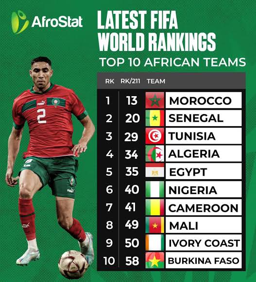 Starting from Morocco the No 1 team in Africa by FIFA rankings largely due to her showing in the last edition of the World Cup in Qatar. Where they reached the semi-final.