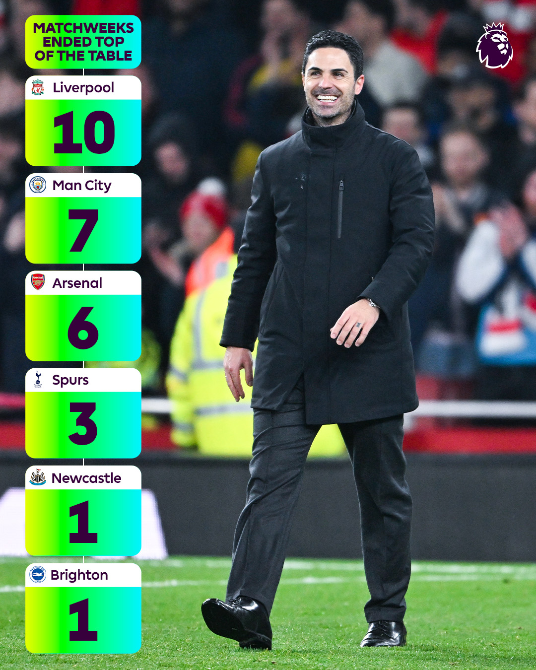 Arsenal Will End The Week As Premier League Table Toppers For The First Time Since Match-week 18