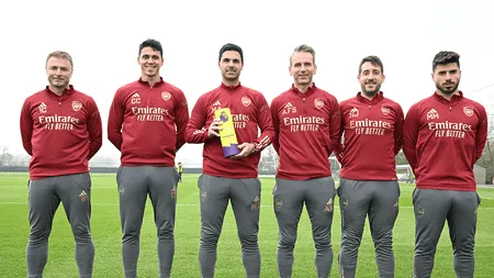 Arteta scooped the award for February after guiding Arsenal to four wins from four and scoring 18 goals in the process, edging out Pep Guardiola and Erik ten Hag to win the silverware, and celebrated collecting the prize with his coaching staff – Inaki Cana, Carlos Cuesta, Albert Stuivenberg, Nicolas Jover and Miguel Molina.