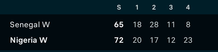 At the end of the third quarter, the Nigerian ladies won but were trailing by 8 points 49:57.