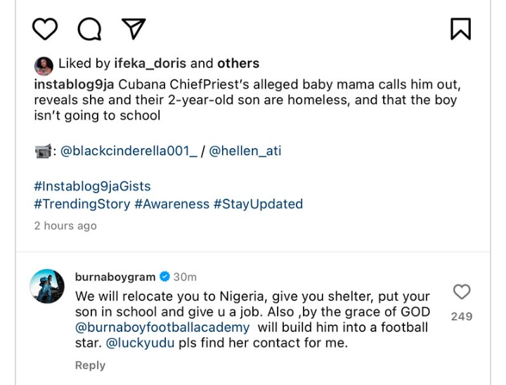 Burna Boy Reacts To Cubana Chief Priest’s Alleged Baby Mama’s Cry For Help