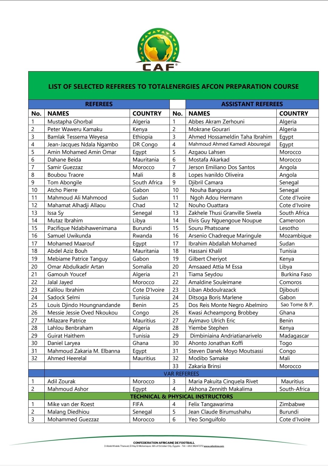 The Confederation of African Football (CAF) has listed 85 referees for a preparatory course ahead of the 2023 Africa Cup of Nations.