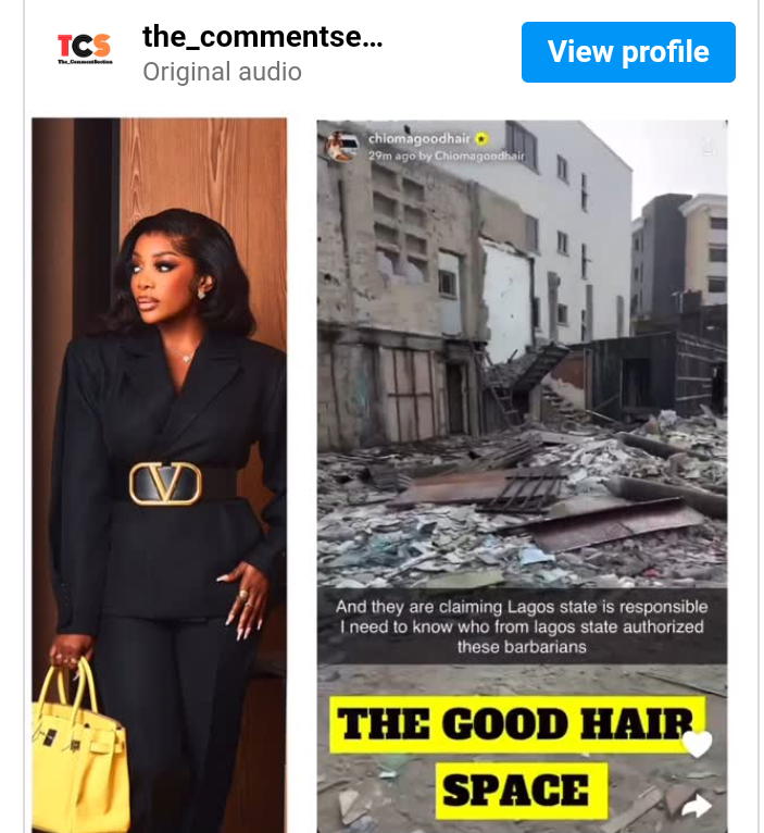 Popular Nigerian entrepreneur Chioma Goodhair, a close friend of Nollywood star Iyabo Ojo, has taken to social media to cry out after her store was demolished by officials.