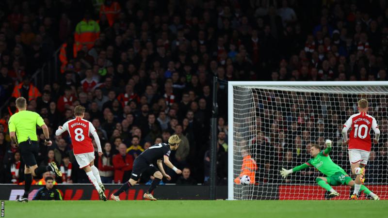 Captain Martin Odegaard showcased his prowess by scoring his 30th Premier League goal for Arsenal, becoming the ninth Norwegian player to achieve this milestone. Odegaard opened the scoring in the 24th minute, capitalizing on an opportunity created by Emile Smith Rowe’s play.