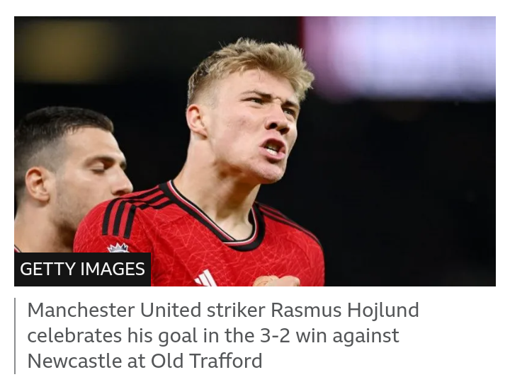 Rasmus Hojlund back on the score sheet after long drought to help Manchester United conquer Newcastle 3:2 at the Old Trafford Stadium.