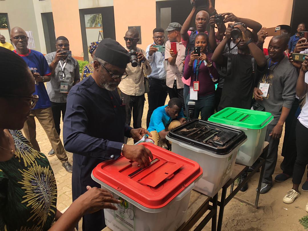 The Speaker of the House of Representatives, Femi Gbajabiamila has cast his vote at his polling unit at Elizabeth Fowler Primary School, Unit 14, Ward G2, Masha-Surulere.