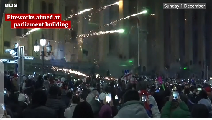 Pro-EU demonstrations escalated on Sunday, with fireworks targeting the parliament building and riot police. Law enforcement retaliated with water cannons, leading to late-night clashes. Reports of violence against journalists and protesters have shocked many, with Georgia’s human rights ombudsman, Levan Ioseliani, condemning the brutality and urging police restraint.
