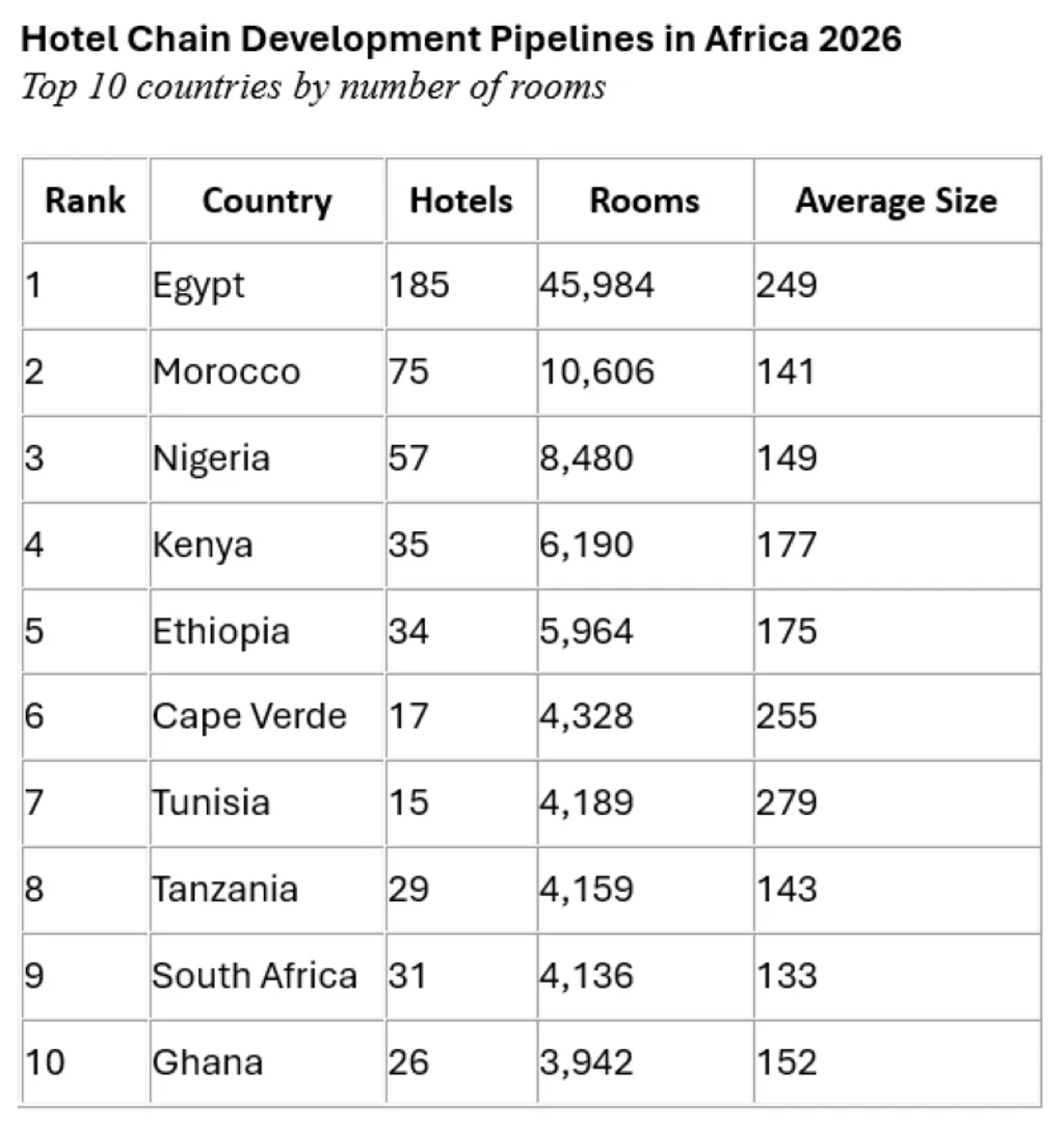 Africa’s hotel development landscape in 2026 is marked by record-scale growth, regional concentration, and strong pipeline momentum in East Africa, positioning the continent for continued expansion in the coming years. However, the gap between ambition and execution remains a key consideration for investors and operators alike.