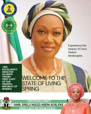 In an unprecedented display of rivalry, the posters feature contrasting messages, with Ngozi inviting Mrs. Tinubu to experience the scenic beauty of Osun State, asserting her role as the state’s First Lady. Meanwhile, Titilola extends her own welcome, also laying claim to the title of First Lady.