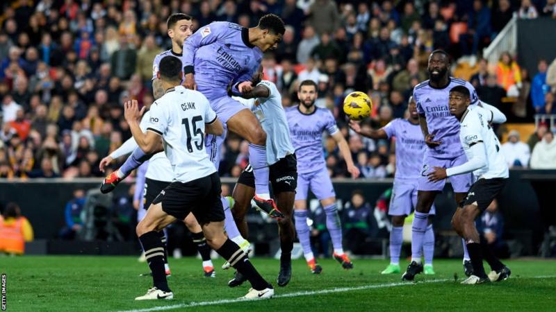 Jude Bellingham’s hopes of securing a winning goal for Real Madrid were dashed after he was controversially sent off for dissent following the final whistle in a thrilling encounter at Valencia.