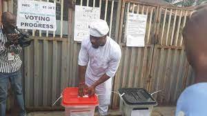 The Lagos State governorship candidate of the Labour Party, Gbadebo Rhodes-Vivour, has arrived at his polling unit 045, Oshifila/Abule Igbira in Anifowose, Ikeja.