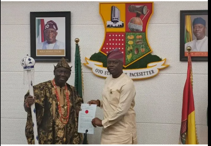 The ceremony was graced by the presence of the kingmakers, known as Oyomesi, alongside top government officials and distinguished personalities from Oyo State. Governor Makinde, who had earlier approved Owoade’s appointment, made the presentation in a statement released by the Commissioner for Information and Orientation, Dotun Oyelade.