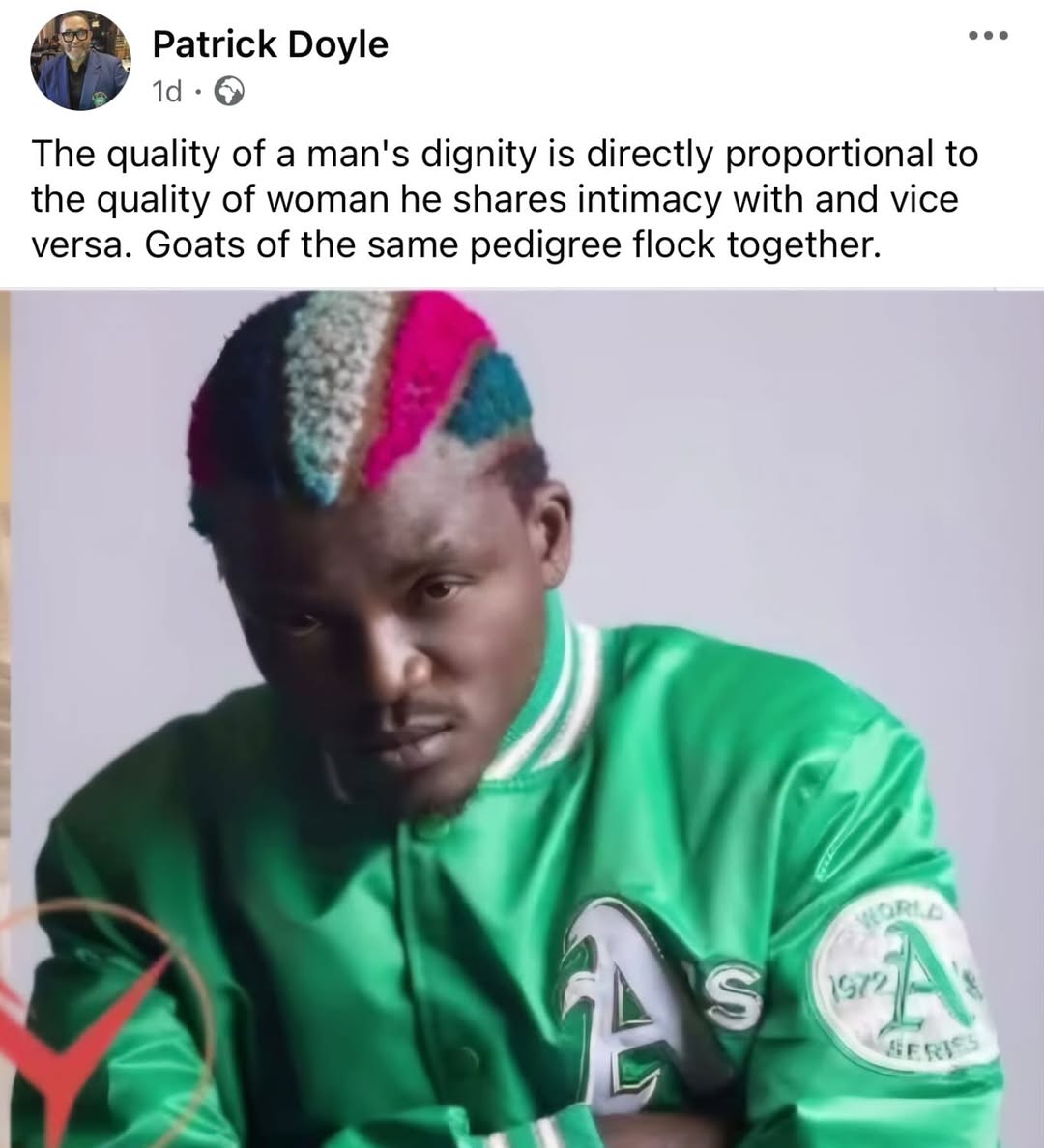 In his reaction, Patrick Doyle shared a picture of Portable and compared him to a goat. Doyle stated that goats with the same pedigree always flock together, seemingly throwing shade at Portable and Queen Dami.