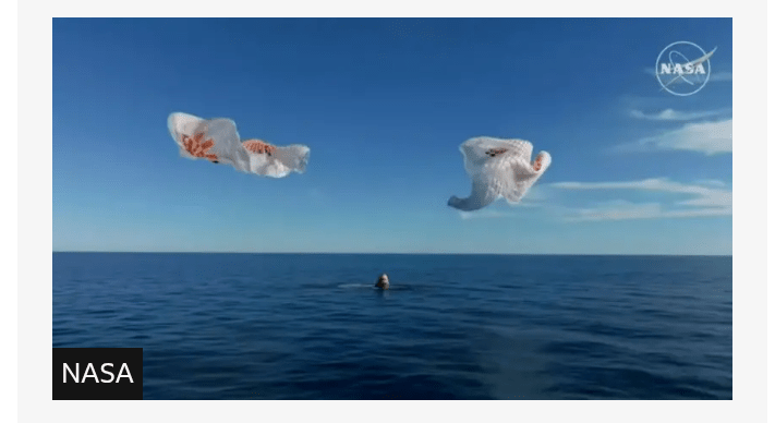 During re-entry, the spacecraft experienced a temporary communications blackout, a routine occurrence caused by intense heat and plasma buildup around the capsule’s heat shield. However, once signal was restored, mission control confirmed that the parachutes had successfully deployed, ensuring a smooth descent into the ocean.