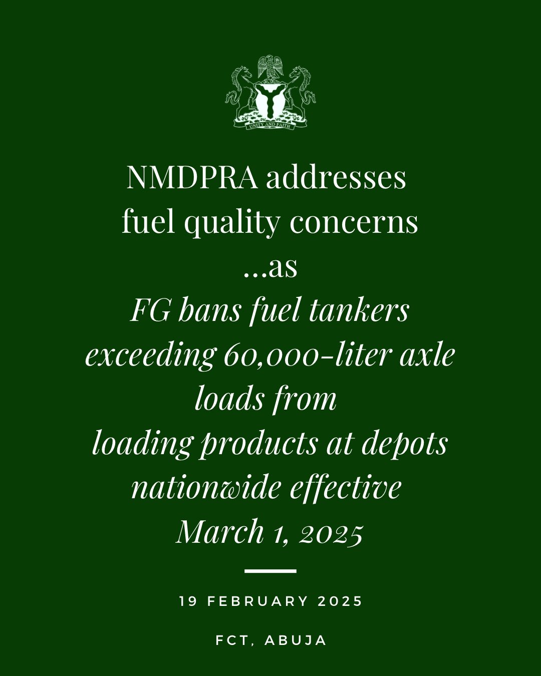 “From 1st March 2025, any truck carrying more than 60,000 litres of hydrocarbon will not be allowed to load at any depot,” he stated.