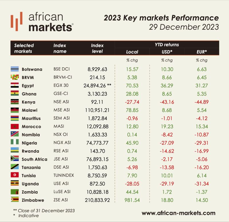 Conversely, Uganda and Kenya faced challenges in 2023, with declines of -28.05% and -27.74%, respectively. Understanding the factors behind these downturns will be crucial for investors navigating the African market in 2024.