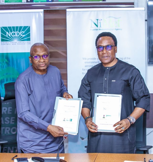 The Nigerian Meteorological Agency (NiMet) and the Nigeria Centre for Disease Control and Prevention (NCDC) have entered into a strategic partnership to enhance public health by sharing data and information on climate-sensitive diseases. The two agencies signed a memorandum of understanding (MoU) on Tuesday at the NCDC Headquarters in Abuja, marking a significant step towards a more climate-resilient Nigeria.