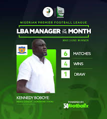 Sunshine Stars head coach, Kennedy Boboye, has been named the Nigeria Premier Football League (NPFL) Coach of the Month for May/June. Boboye’s exceptional performance during this period earned him the prestigious accolade, outshining competitors such as Bayelsa United’s Meremu Okara, Niger Tornadoes’ Majin Mohammed, and Rangers’ Fidelis Ilechukwu.