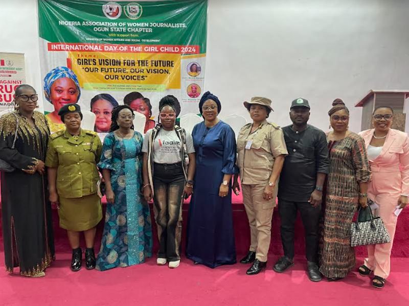 The event, organised by the Nigeria Association of Women Journalists (NAWOJ), Ogun Chapter, centred on the theme *”Girls’ Vision for the Future: Our Vision, Our Voice”*. Soyombo, addressing students from several schools, underlined the importance of empowering girls and providing them with the tools necessary to thrive in the future.