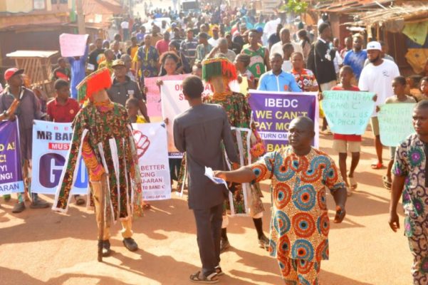 Gathering as early as 8:00 a.m. at the Bareke roundabout in the heart of the town, the demonstrators marched through major streets carrying placards and chanting protest songs. Some of the inscriptions on their placards read: *“Omu-Aran Say No to Band A,” “Mr Badmus Must Go,” “Bring Us Back to Band C,” “Revert Omu-Aran to Band C,”* and *“Omu-Aran Youths Have Spoken Loudly.”*