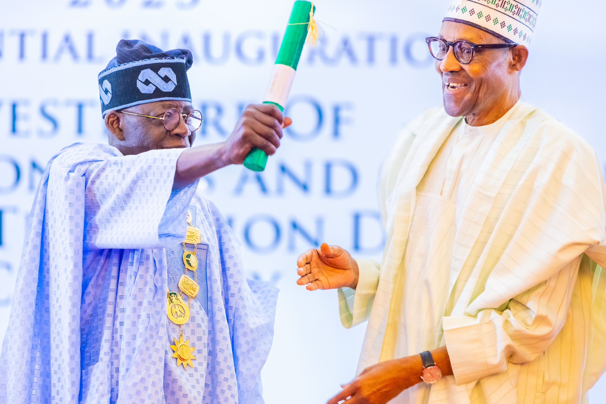 “Today, I am so proud to have handed over to you, my successor, Your Excellency, Bola Ahmed Tinubu, three key documents that will guide you as you aim to define a path for your administration.