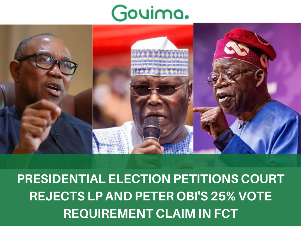 The Presidential Election Petitions Court has dismissed the argument put forth by the Labour Party (LP), and Peter Obi, asserting that a 25% vote requirement applies to the Federal Capital Territory (FCT).