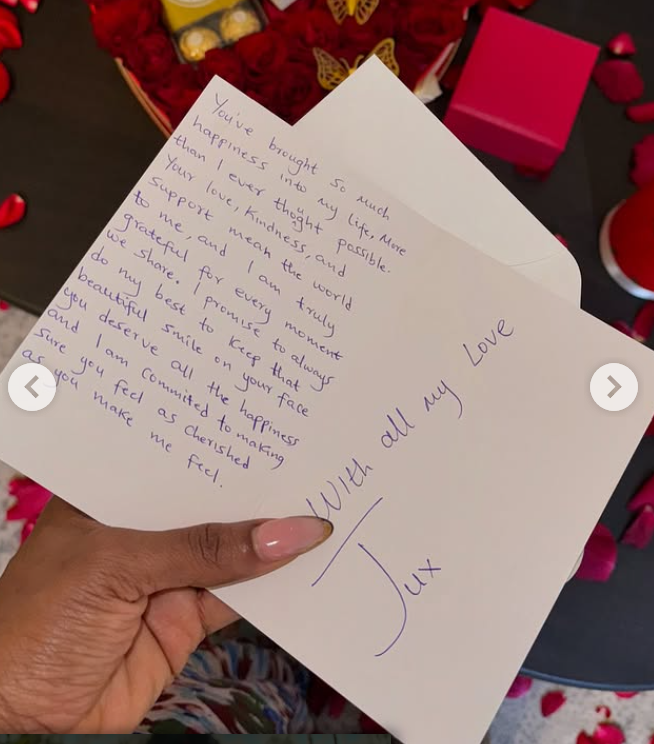 Juma pledged to always make Priscilla smile and feel special. Priscilla shared the letter along with photos and videos of their memorable moments in 2024, leaving fans gushing over the couple’s love.