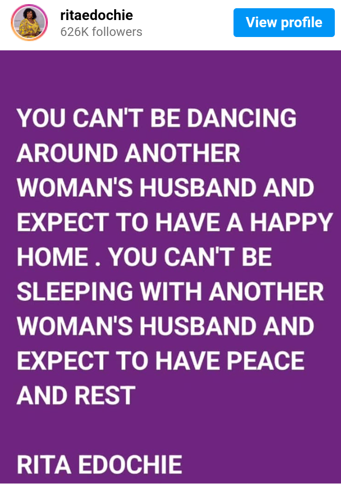 Nigerian actress Rita Edochie has blasted Judy Austin, the second wife of her in-law Yul Edochie, in a scathing Instagram post.