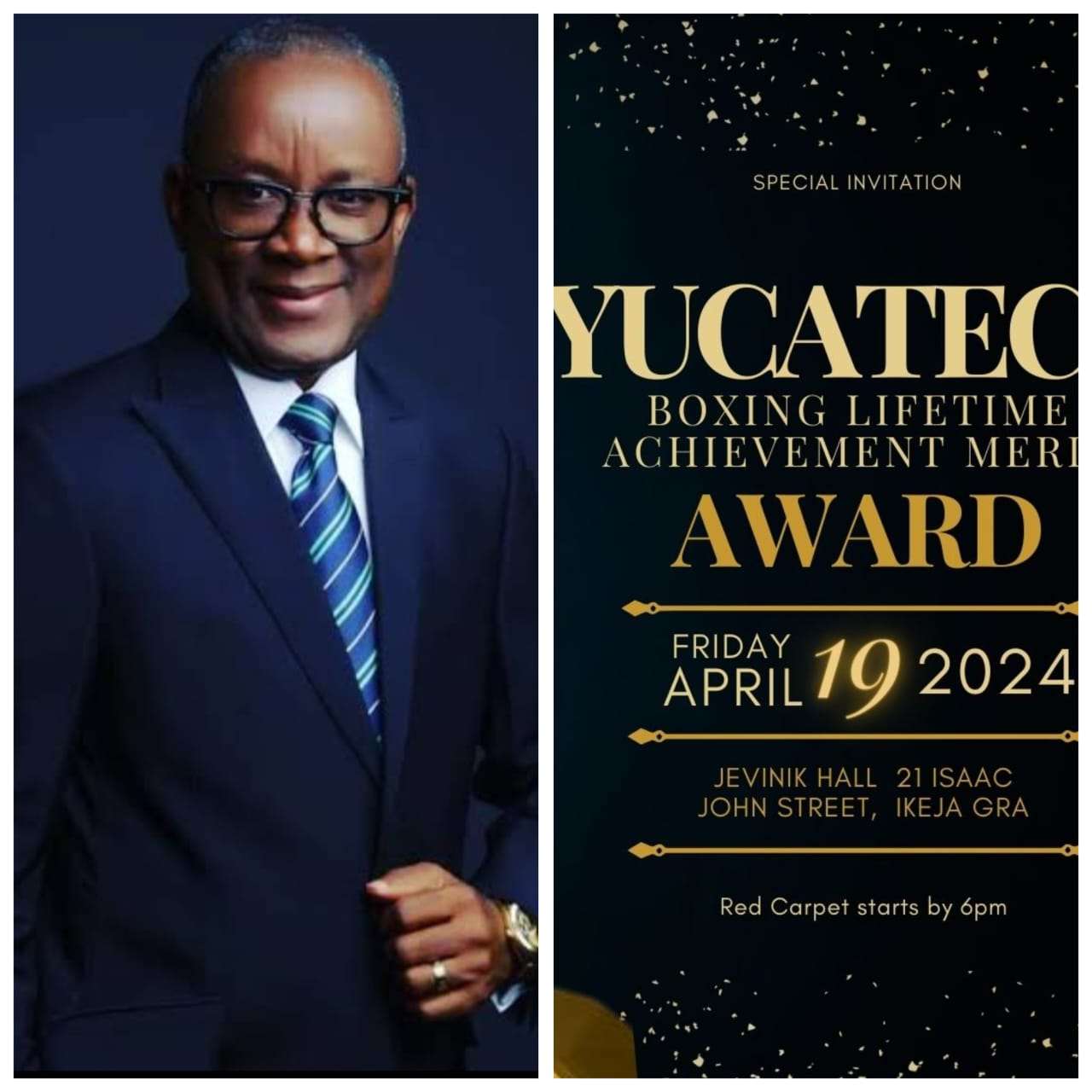The inaugural Yucateco Sports Ministry Boxing Award ceremony is scheduled to commence at 6pm this Friday at JEVINIK Place, 21 Isaac John Street Ikeja GRA Lagos.