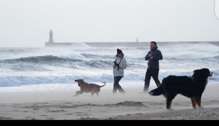 Live scenes from Tynemouth Longsands showed dog walkers battling against the fierce winds, sand whipping through the air, underscoring the storm’s intensity.