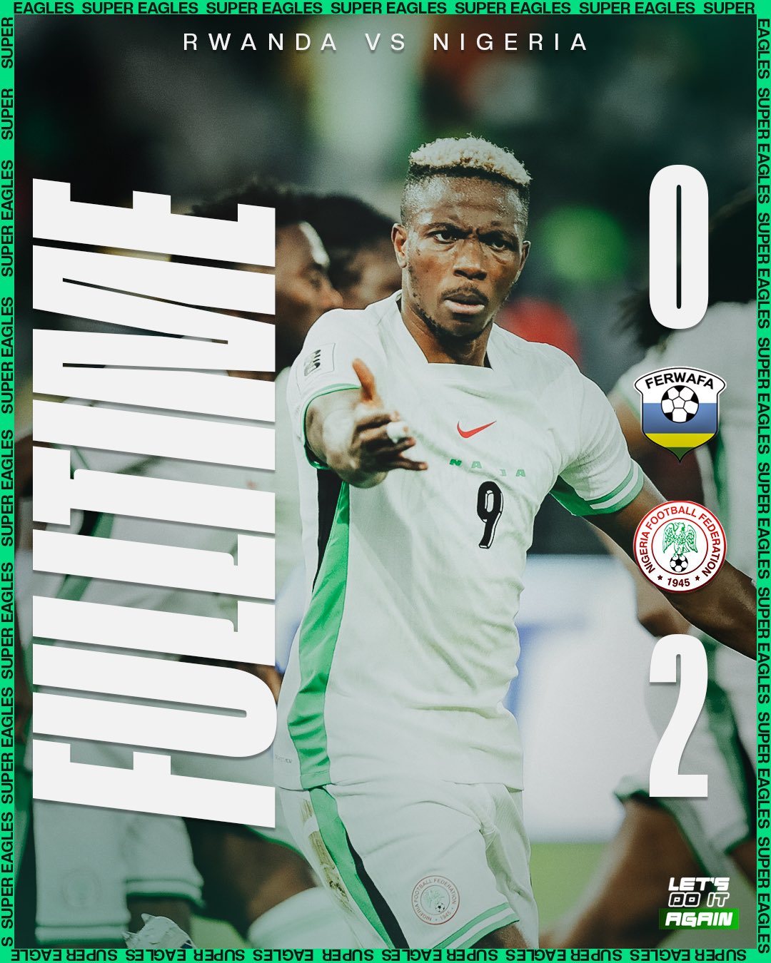 Nigeria’s Super Eagles reignited their 2026 FIFA World Cup qualification campaign with a commanding 2-0 victory over Rwanda at the Amahoro Stadium in Kigali on Friday evening. Galatasaray striker Victor Osimhen proved the hero of the night, scoring a brilliant brace to secure three vital points and breathe new life into Nigeria’s quest to reach the finals in the United States, Canada, and Mexico.