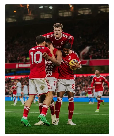 Taiwo Awoniyi, 24, scored a crucial goal during Nottingham Forest’s match against West Ham United and drew attention by removing his shirt to reveal a message inscribed underneath.