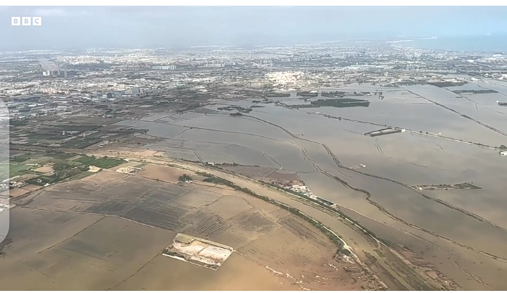 According to Spain’s meteorological agency, Aemet, the town of Chiva near Valencia received a year’s worth of rainfall in just eight hours, with rain warnings continuing for southern and eastern regions. King Felipe VI has cautioned that the emergency is “still not over,” while Prime Minister Sánchez urged citizens to take shelter as necessary.