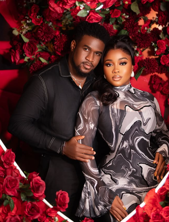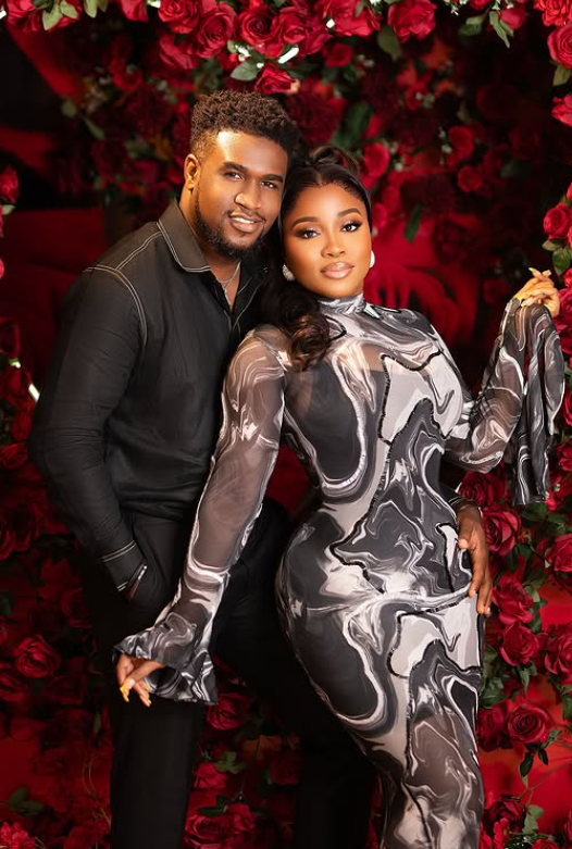 Veekee James took to Instagram to share the photos, posing with her husband in front of a red background decorated with roses. She captioned the post, “On this day 1 year ago, we legally tied the knot. It’s the month of love and the month of our anniversary. Can’t wait to celebrate our Trad & White Wedding Anniversary. What a year it has been.”