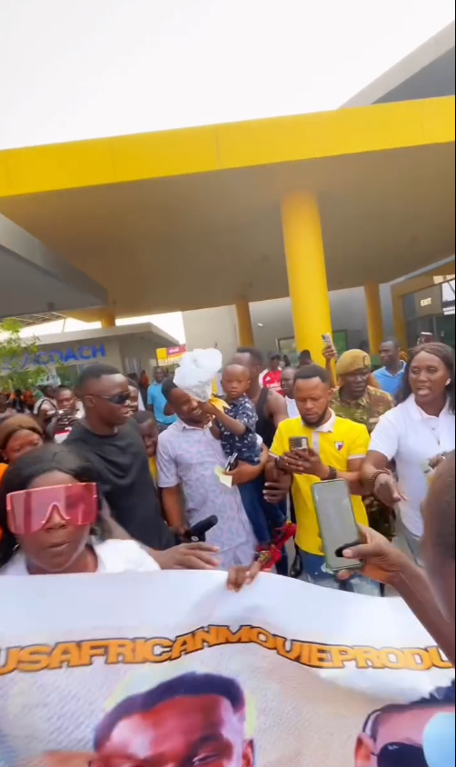 Nollywood actor Zubby Michael arrived in Sierra Leone and was met with a heroic welcome from the crowd.